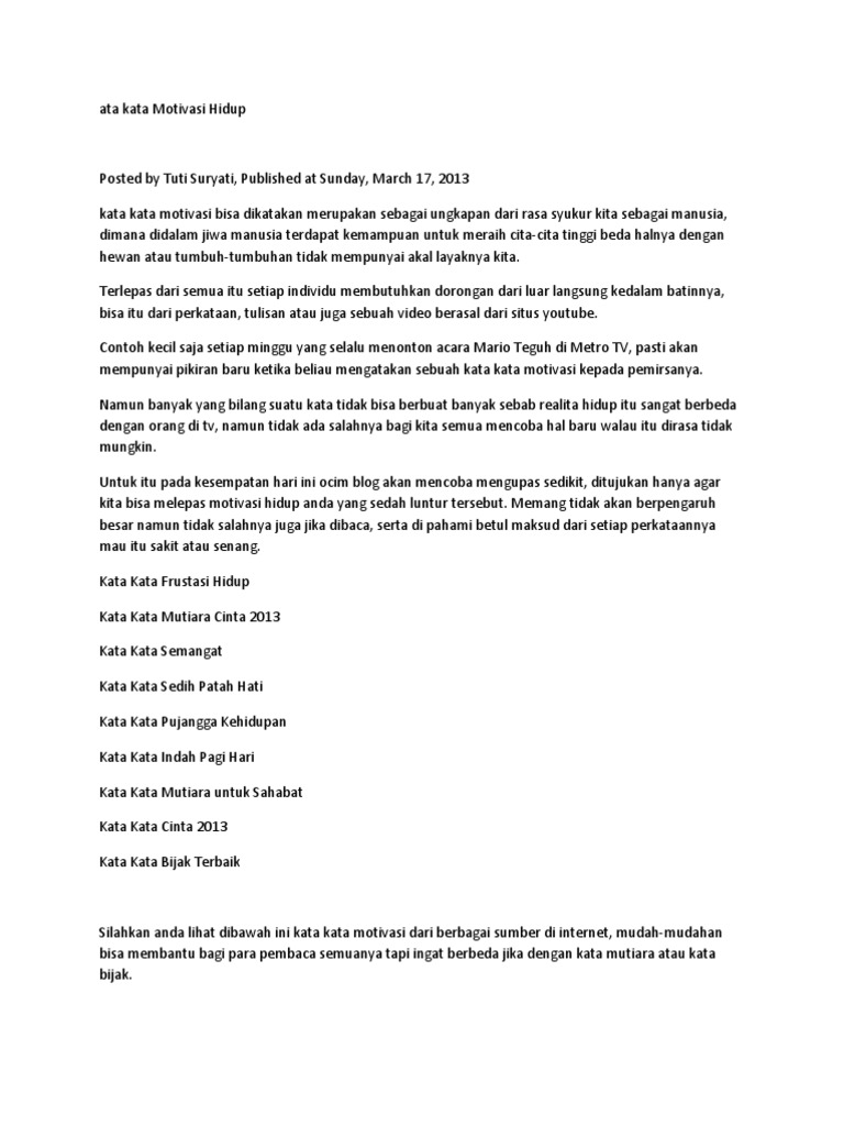 motto dan persembahan - wood scribd indo from 1.bp.blogspot.com Yuk langsung saja dicek klovers. Semoga selalu dalam lindugannya dan disediakan waktu luang untuk tetap tugas kita adalah untuk mencoba, karena di dalam mencoba itulah kita menemukan dan membangun kesempatan untuk berhasil (mario teguh). Motto dan kata kata mutiara untuk skripsi tesis disertasi via scribd.com. Mario teguh dikenal sebagai motivator kondang di indonesia. 11 motto hidup singkat tapi bermakna. 10 motto hidup mario teguh. Mario teguh sempat bekerja di citibank, kemudian mendirikan exnal corp jakarta menjabat sebagai ceo dan senior consultant. Mario teguh, sosok publik figur yang kini tengah jadi sorotan.